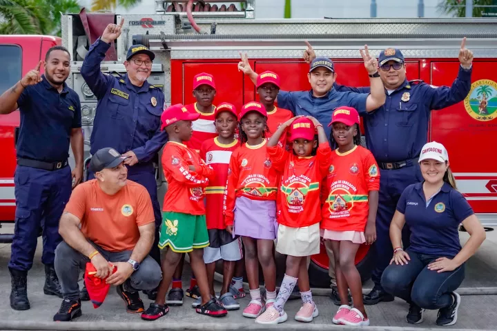 Niñas y niños de Masaka Kids Africana visitaron al Cuerpo de Bomberos de Cartagena y fueron ‘bomberitos’ por un día