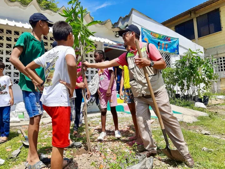 Cartagena de Indias D. T. y C; 2 de octubre del 2023. Con una jornada de siembra de árboles, la Unidad de Infancia, Juventud y Familia, de la Secretaría de Participación, Juventud y Familia logró convocar a niños y padres de familia en la terraza de la ludoteca Sonrisas de Cartagena, del barrio Nelson Mandela, sector Los Olivos.