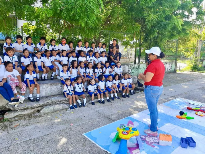 Unos 25 estudiantes, entre niños y niñas de primera infancia, disfrutaron de juegos como la peregrina, carrera en sacos, bolos, carros, muñecas, dados gigantes y alfombras voladoras, entre otras actividades, mientras iban recibiendo instrucciones de los funcionarios de la Unidad de Infancia, Juventud y Familia sobre el derecho al juego y la recreación.