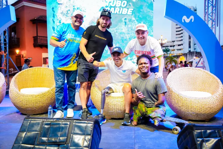 Cartagena de Indias, D.T. y C. 17 de agosto de 204. Un nuevo espacio para la conversación sobre el ciclismo y lo que será el Reto Movistar Alcaldía de Cartagena 2024, tuvieron los participantes con dos de los invitados de lujo de la carrera: Peter Sagan y Juan José Florian “Mochoman”, acompañados del alcalde Mayor, Dumek Turbay y el director del IDER, Campo Elías Terán, en la Plaza de la Aduana.