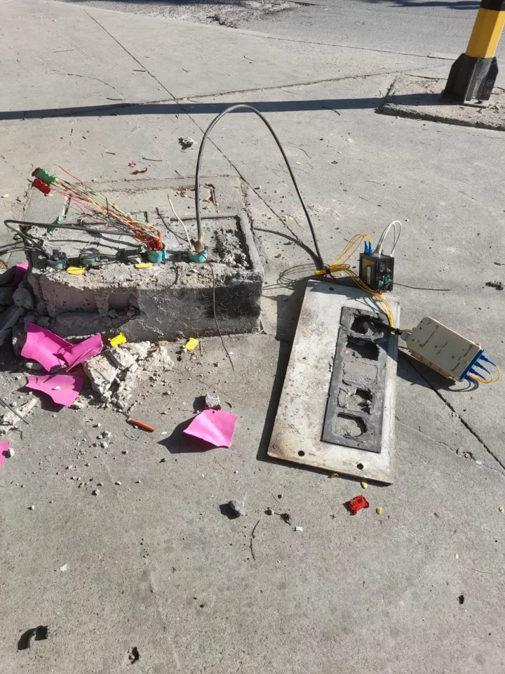 Cartagena de Indias D. T. y C., 8 de diciembre de 2022. Nuevamente la red semafórica del Distrito es víctima del vandalismo. En esta oportunidad arrancaron el controlador y se hurtaron el gabinete con todo el cableado y tarjeta de control del cruce frente a Mall Plaza, donde circulan los vehículos que se movilizan por la carrera 14, y los que salen de la glorieta de San Felipe hacia la carrera 14 con destino a la Avenida Pedro de Heredia.
