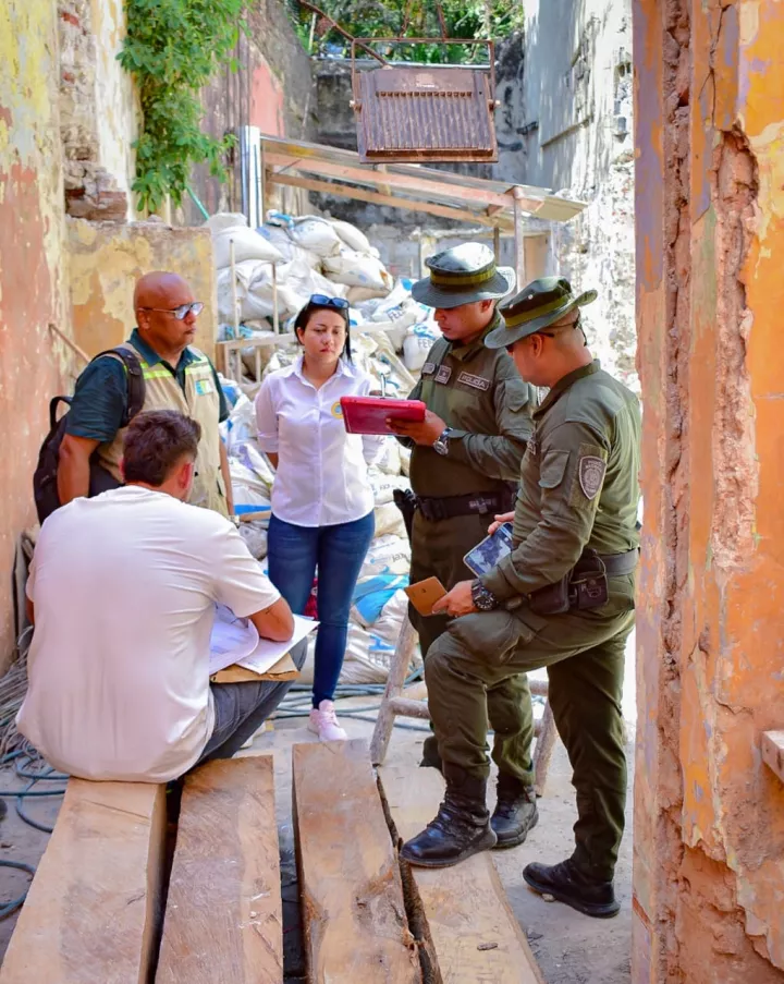 Cartagena D.T. y C., 30 de abril de 2024. En un operativo de control realizado en el Centro Histórico y convocado por la Oficina de Servicios Públicos de la Secretaría General y apoyado por el Establecimiento Público Ambiental (EPA) y la Policía Nacional, fueron suspendidas dos obras civiles; una en la calle del Sargento Mayor y la otra en la calle El Coliseo; ambas por no presentar la documentación que les respaldara la disposición adecuada de los residuos de construcción y demolición (RSD).