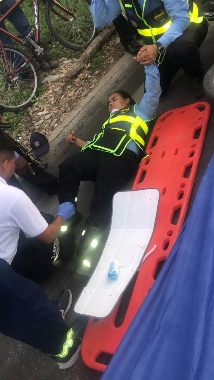 Cuando la Policía Judicial del DATT llegó al punto, se encontró sobre la vía a la agente de Tránsito, quien había sido atropellada por la motocicleta de placas CRI-61F, sufriendo lesiones en su pierna derecha, a la altura del tobillo, golpes en brazo izquierdo, a la altura de la muñeca, y un hematoma en el rostro zona frontal de la cabeza, por lo que debió ser necesario su traslado a la clínica Madre Bernarda, donde permanece recluida recibiendo atención médica.