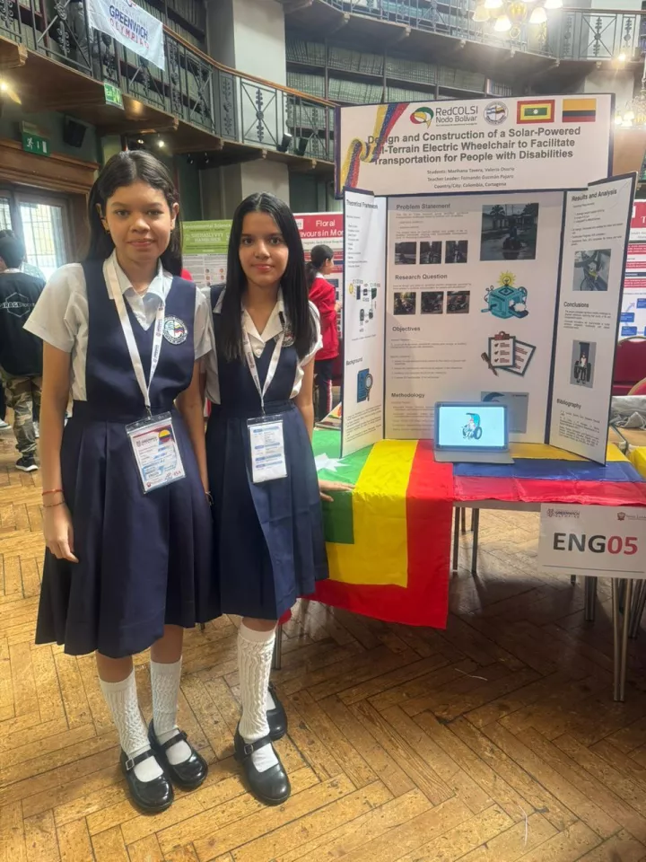 Mariana Tavera y Valeria Osorio, estudiantes de la Institución Educativa República de Argentina, representaron a Cartagena y a Colombia con su innovador proyecto "La Silla de Ruedas Todo Terreno Autosustentable con Energía Solar". Este desarrollo no solo demuestra su talento y dedicación, sino también el potencial de nuestros jóvenes para crear soluciones sostenibles y tecnológicas.