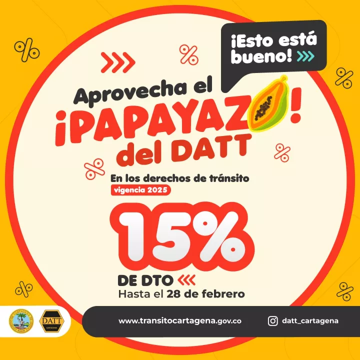 Cartagena 20 de enero de 2025_ El Departamento Administrativo de Tránsito y Transporte (DATT) invita a los conductores y propietarios de vehículos a inscribir sus derechos de tránsito en Cartagena y disfrutar de dos años gratuitos, además de atractivos descuentos por pronto pago durante el primer semestre del año.