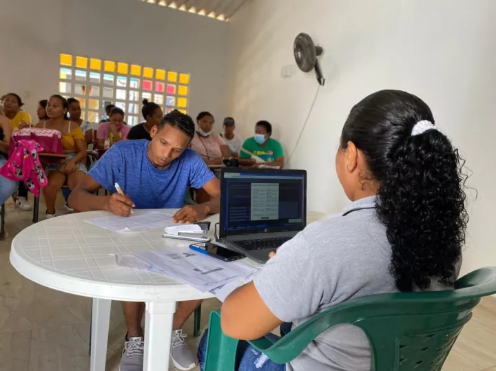 Cartagena de Indias D. T. y C., 28 de octubre de 2022. Las comunidades rurales de Bayunca y Pasacaballos ya cuentan con nuevos puntos de atención físicos del Sisbén, lo que permite a los hogares de esta población realizar sus trámites y solicitudes del Sisbén IV sin salir de sus corregimientos y veredas.