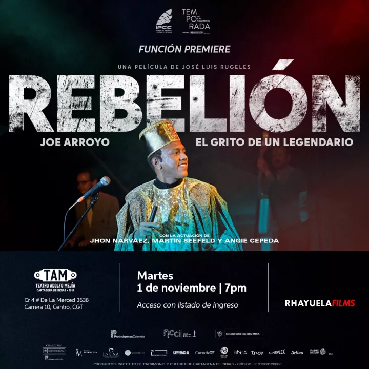 Cartagena de Indias D. T y C., 31 de octubre de 2022. El 1 de noviembre se estrenará en La Heroica la película “Rebelión”, basada en la vida y obra de una de las figuras cartageneras más emblemáticas de la música del Caribe colombiano, Joe Arroyo.