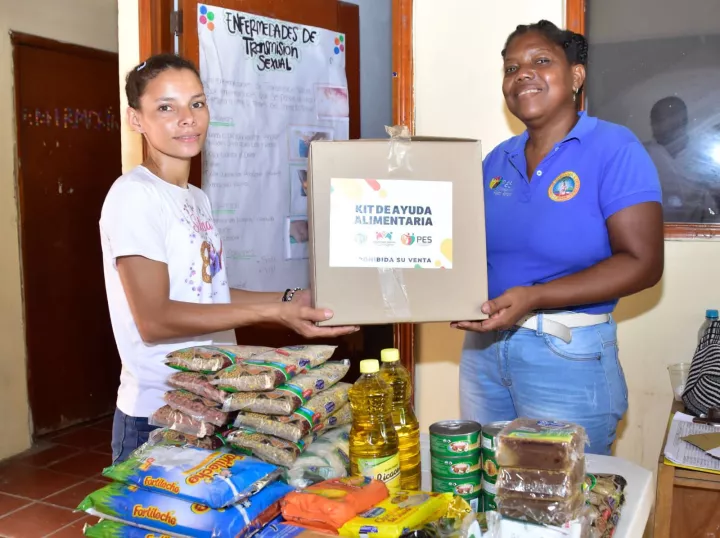 El kit de alimentación contiene alimentos no perecederos como arroz, lentejas, frijol, harina, leche en polvo, panela, pasta, sal, café, chocolate, aceite vegetal y atún, productos con alto valor nutricional de la canasta familiar.