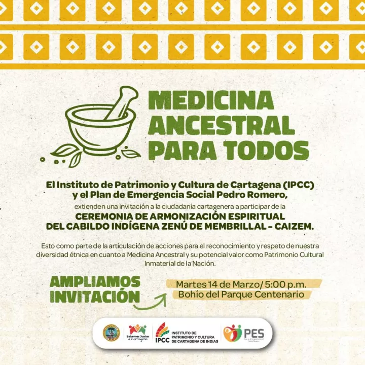 Cartagena de Indias D. T. y C; 11 de marzo de 2023. Con el firme propósito de que la práctica de la Medicina Ancestral y Tradicional (MAT) continúe su proceso de fortalecimiento y prevalencia en el tiempo, el Plan de Emergencia Social- Pedro Romero, y el Instituto de Patrimonio y Cultura de Cartagena- IPCC, adelantan un trabajo mancomunado para postular al Cabildo Indígena Zenú de Membrillal - CAIZEM - como Patrimonio Cultural Inmaterial de la Nación.