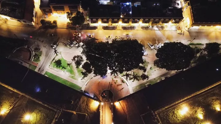 Cartagena de Indias D. T y C., 05 de octubre de 2022. El secretario General, Carlos La Rota García, inauguró el alumbrado público de la Plaza de la Artillería, frente al histórico baluarte de Santo Domingo.