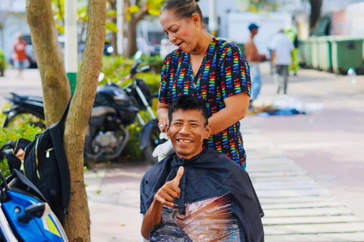 La plaza Benkos Biohó se convirtió en una peluquería a cielo abierto para 33 habitantes de calle