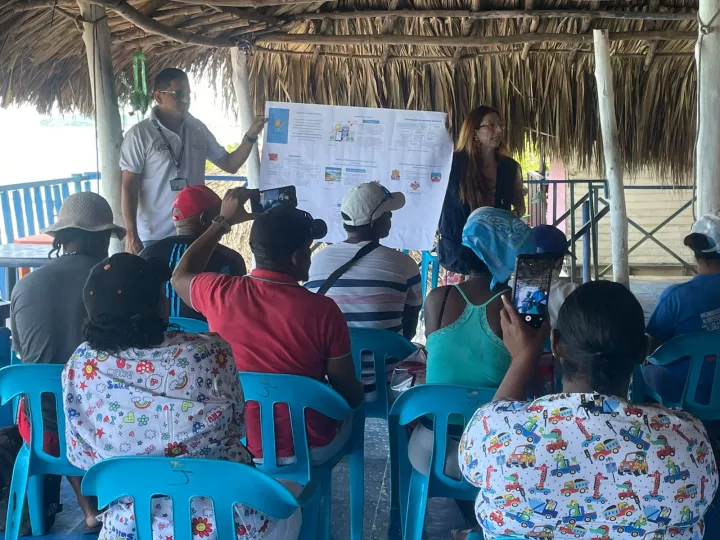 Cartagena de Indias D.T y C., 05 de Octubre de 2022. En el marco de los compromisos adquiridos con la comunidad de Playa Blanca para garantizar el orden y la prestación de un servicio de calidad a los turistas, desde la Corporación de Turismo se coordinó, en conjunto con la Superintendencia de Industria y Comercio y la Policía de Turismo, una jornada de capacitación para los actores turísticos de Playa Blanca.
