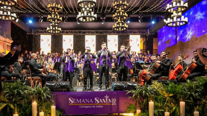 Cartagena de Indias, D. T. y C. 13 de abril de 2025: Con una presentación magistral evocando las tradiciones religiosas de Semana Santa, artistas cartageneros cantaron al unísono en la gran Masa Coral, que por primera vez en Cartagena cerró el Lucernario “Peregrinos de esperanza” y consagración de la ciudad.