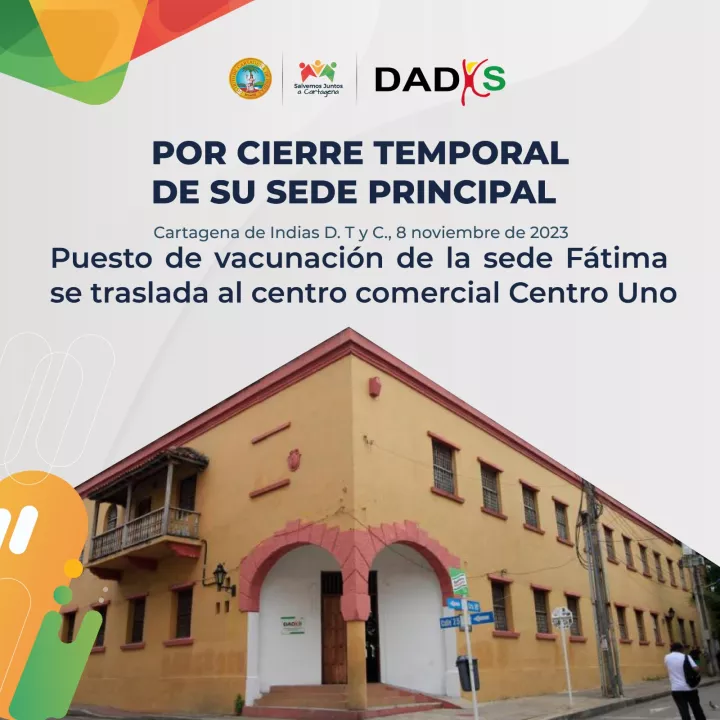 Cartagena de Indias D. T. y C; 08 de noviembre de 2023. El Departamento Administrativo Distrital de Salud, DADIS, cerró temporalmente las puertas de su sede en el barrio Getsemaní calle Larga (Casa Fátima) debido al inicio de obras de mantenimiento y restauración, por lo cual el puesto de salud que funciona en la misma sede deberá cerrar también sus puertas hasta tanto se finalicen las obras.