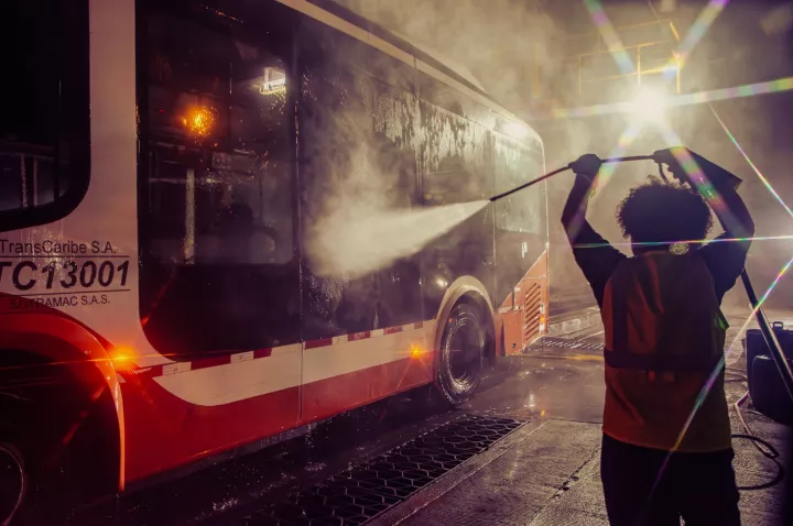 Inicia un nuevo día de operación de Transcaribe, y más de 110 mil cartageneros se moverán hacia sus destinos, en parte gracias a la labor de estas personas que, mientras otros duermen, trabajan para poner a punto cada vehículo del sistema.