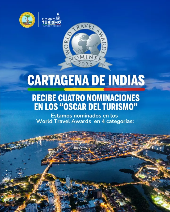 Cartagena de Indias D.T y C; 01 de agosto de 2025. Cartagena de Indias está muy cerca de hacer historia y fortalecer su liderazgo como destino turístico referente en Sudamérica. El destino está nominado en 4 importantes categorías en los World Travel Awards, conocidos como los “Oscar del Turismo”: