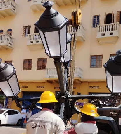 Renovación del alumbrado público en la Plaza Santo Domingo avanza a paso firme