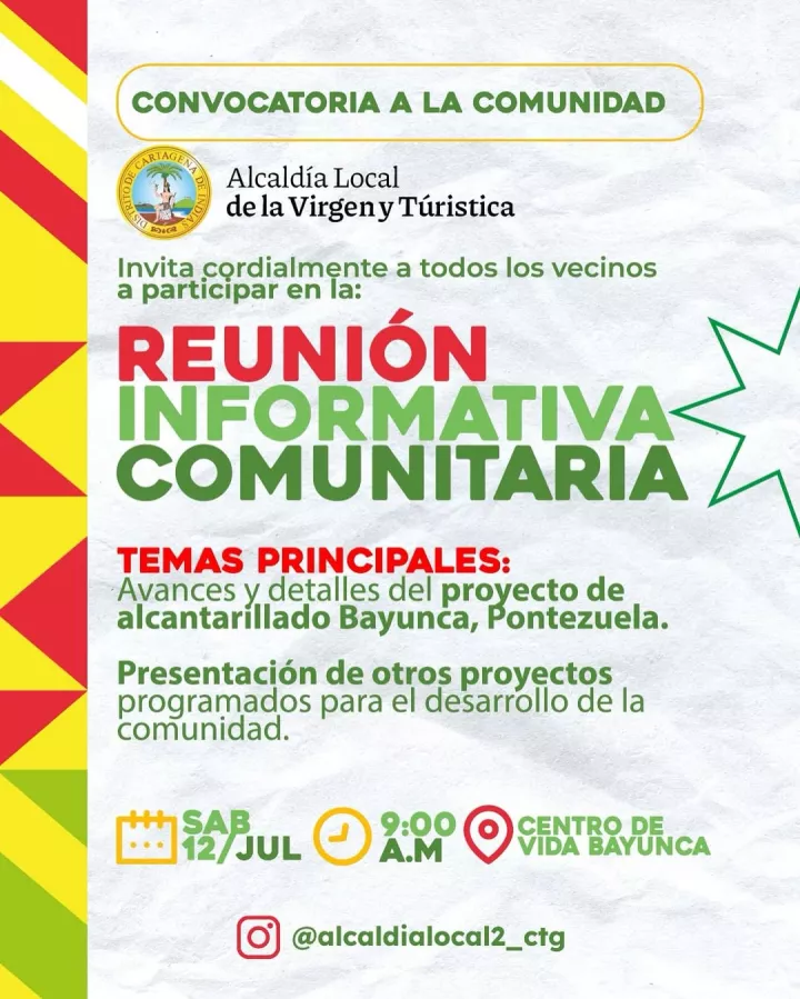 Desde la Alcaldía Local de la Virgen y Turística te invitamos a participar en la Reunión Informativa Comunitaria 🗣️🤝