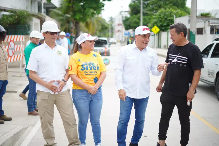 Cartagena de Indias D. T. y C., 7 de septiembre de 2024. La Alcaldía de Cartagena, en cabeza del alcalde Dumek Turbay Paz y el Secretario de Infraestructura, Wilmer Iriarte, hoy hicieron entrega a la comunidad de importantes calles de Crespo, Nuevo Campestre y La Plazuela.