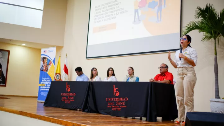 Cartagena de Indias D.T. y C., 6 junio de 2024. En el auditorio Elías Bechara de la Universidad del Sinú se llevó a cabo la instalación de la Sesión ampliada del Mecanismo Articulador para el abordaje integral de las violencias por razones de sexo y género, en Cartagena y el departamento de Bolívar. Todo esto con el objetivo de desarrollar una estrategia interinstitucional e intersectorial para el abordaje de la violencia sexual con énfasis en Trata de Personas y Explotación Sexual Comercial de niñas, niños y adolescentes, ESCNNA, en nuestra ciudad.