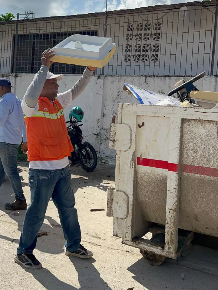 Cartagena de Indias D. T. y C., 25 de octubre de 2024. La Secretaría General, desde el área de Servicios Públicos, y con el apoyo de la empresa Pacaribe, lideró una jornada de recolección de inservibles en el barrio Pablo Sexto, en las faldas de La Popa, donde la comunidad se deshizo de objetos dañados que tenían acumulados en sus casas.