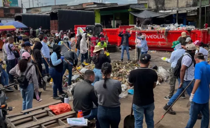 La actividad se desarrolló en el sector La Rampa, uno de los puntos de mayor movimiento dentro del mercado, donde los residuos orgánicos e inorgánicos se agrupan en grandes volúmenes, por ser la zona de descargue de los camiones transportadores de mercancía y el sitio al que llegan los carros recolectores del prestador de aseo Veolia.