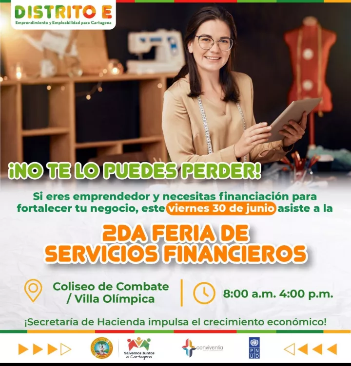 Cartagena de Indias D. T y C; 29 de junio de 2023. Este viernes 30 de junio, la Secretaría de Hacienda de Cartagena invita a asistir a la Segunda Feria de Servicios Financieros que se realizará en el Coliseo de Combate, desde las 8:00 a.m. hasta las 4:00 p.m.