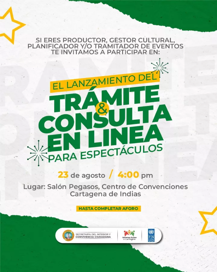 Cartagena de Indias D. T y C; 23 de agosto de 2023. La Secretaría del Interior y Convivencia Ciudadana se complace en anunciar el lanzamiento oficial de la Plataforma Virtual de Trámites en Línea para Eventos y Espectáculos, que facilitará la forma en que se planifican y gestionan los permisos que se requieren para estos momentos.