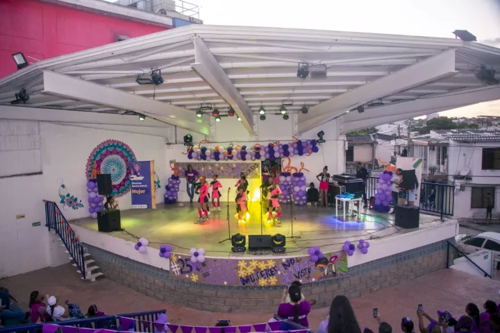El evento tuvo lugar en el teatrino del Centro Cultural del barrio El Socorro, donde las asistentes, luciendo atuendos de color morado, disfrutaron de música de acordeón, disc jockeys, danzas juveniles y desfiles de mujeres que representaron sus respectivas áreas profesionales.