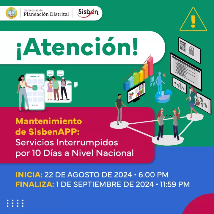 Cartagena de Indias, D. T. y C; 21 de agosto de 2024 El Departamento Nacional de Planeación- DNP informó a la Secretaria de Planeación Distrital que, a partir del jueves 22 de agosto, desde las 6:00 p.m., todos los servicios de SisbenAPP quedarán temporalmente fuera de línea en todo el país debido a una importante actualización.