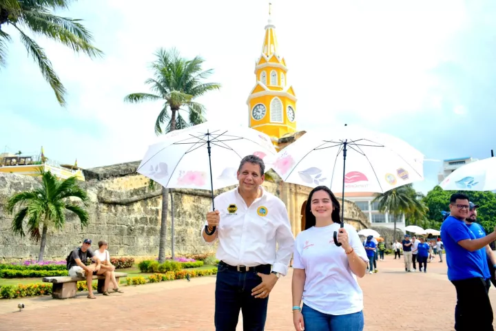 Cartagena de Indias, D. T y C; 25 de agosto de 2025– A través de un pilotaje de innovación pública, que busca implementar una estrategia pedagógica y participativa, para fortalecer una ciudadanía solidaría, respetuosa y corresponsable con el equipamiento colectivo y el cruce adecuado por la señalización vial, la Alcaldía Mayor de Cartagena, a través del Departamento Administrativo de Transito y Transporte- DATT, lanzó la iniciativa ‘Sombrillas Caminantes’.
