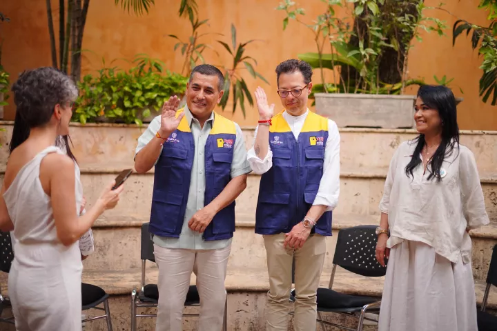 "Debido al trabajo realizado con la demolición del edificio Aquarela, con el que se buscó proteger el Patrimonio de la Humanidad de la ciudad, la Unesco decidió nombrarlo alcalde como un vigía del Patrimonio Cultural, con el que usted se compromete a seguir preservando el Patrimonio", indicó Saia Vergara, mientras hacía entrega del chaleco al alcalde Turbay Paz y al ministro de las Culturas, las Artes y los Saberes, Juan David Correa.