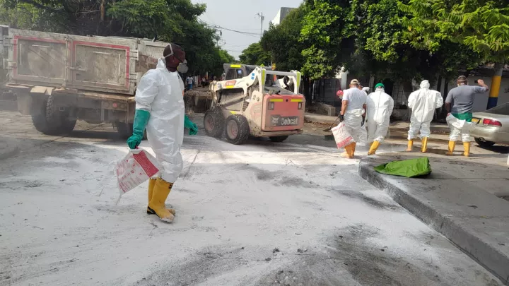 Al conocer la denuncia de la comunidad, el director del EPA Cartagena, Mauricio Rodríguez, acudió desde muy temprano al sitio con profesionales especializados y personal de la Oficina de Gestión del Riesgo de Cartagena para evaluar la situación presentada. Se determinó que hubo fallas de una volqueta cargada con desechos alimenticios de la empresa, lo que ocasionó el vertimiento de su carga en plena vía pública generando afectación en la movilidad y malos olores en el sector.