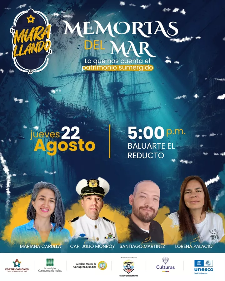 En esta ocasión, la actividad titulada “Memorias del mar. Lo que nos cuenta el patrimonio sumergido”, tendrá como invitada a Mariana Carulla Arreaza, quien es restauradora de bienes culturales muebles, especialista en Patrimonio Cultural Sumergido con énfasis en conservación de la Universidad Externado de Colombia. Además, Carulla tiene formación en gestión integral de Sitios de Patrimonio Mundial y en Patrimonio Subacuático con la Unesco. Actualmente es asesora de la dirección de Patrimonio y Memoria del Ministerio de las Culturas, las Artes y los Saberes.