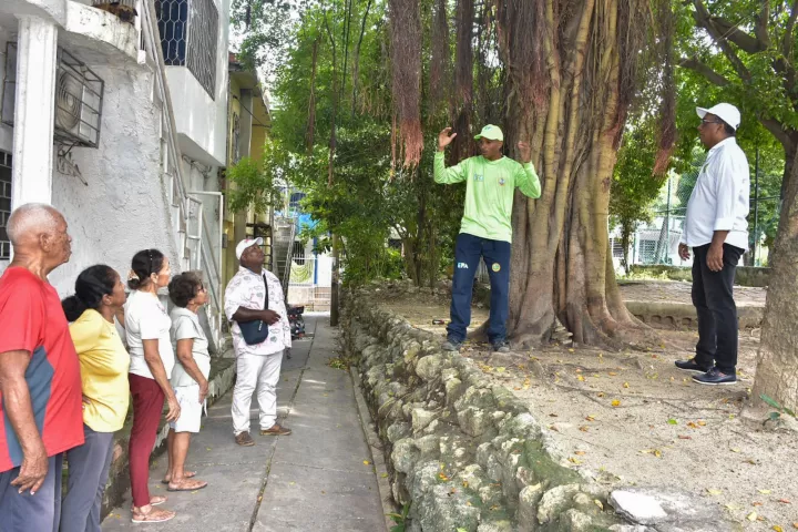 Cartagena de Indias D.T. y C., 10 de septiembre 2024. Los barrios Chile y Nuevo Chile han sido intervenidos por el Establecimiento Público Ambiental, EPA Cartagena, con apoyo de la Oficina de Gestión del Riesgo del Distrito, a través de un plan de choque para hacer mantenimiento a cerca de 12 árboles en esos vecindarios y erradicar la planta parásita ‘pajarita’, causante de la muerte de muchos de ellos.