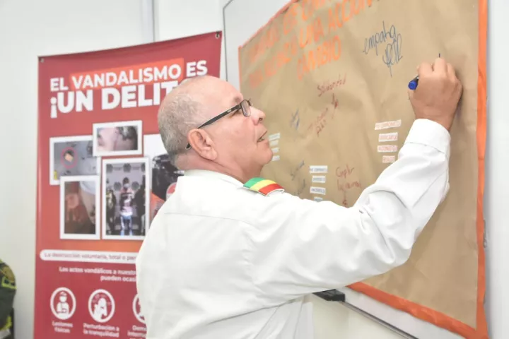 Durante el acto, tanto usuarios como operadores se comprometieron a desarrollar acciones que, desde su comportamiento cotidiano, contribuyan a mantener la convivencia y el respeto en cada viaje a bordo de Transcaribe.