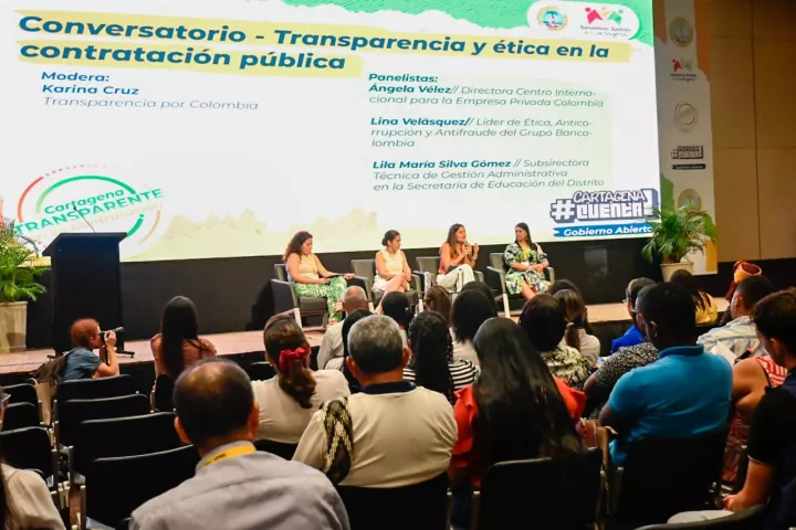 En el conversatorio se explicó a la ciudadanía la importancia de la ética a la hora de realizar contrataciones y el rol del sector privado, “estos espacios son relevantes para que los cartageneros conozcan cómo la ética va de la mano con la contratación. Desde el Grupo Bancolombia compartimos las acciones que se realizan para que los empleados se comporten de manera adecuada y, de esta manera, ejercer una corresponsabilidad de vida. Además, creemos que nuestras experiencias pueden servir para las empresas pequeñas y medianas”, manifestó Lina Velásquez, líder de Ética, Anticorrupción y Antifraude del Grupo Bancolombia.