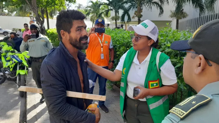 El equipo de trabajo respondió a las denuncias hechas por residentes y trabajadores de la zona, quienes informaron sobre un habitante de calle identificado como Carlos William Crespo Díaz, oriundo del municipio de Maicao. Este ciudadano, que presentaba comportamientos agresivos hacia turistas y trabajadores del sector, se había convertido en un factor de riesgo para la comunidad. La situación escaló cuando Crespo Díaz agredió a un ayudante de carpero que intentó intervenir para defender a un turista.
