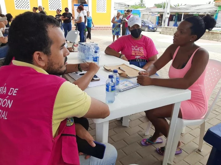 Cartagena de Indias D. T. y C; 30 de agosto del 2023. La Unidad de Infancia, Juventud y Familia, de la Secretaría de Participación y Desarrollo Social de la Alcaldía de Cartagena participó en una jornada sociolegal para los nativos del corregimiento de Santa Ana, isla de Barú, actividad en la que se hizo acompañar de entidades nacionales e internacionales, que también laboran en lo social. Las entidades que hicieron el acompañamiento fueron OIM, CARE, Programa Mundial de Alimentos, USAID, ISRAID, Fundación Santo Domingo y el Hospital Local Cartagena de Indias.