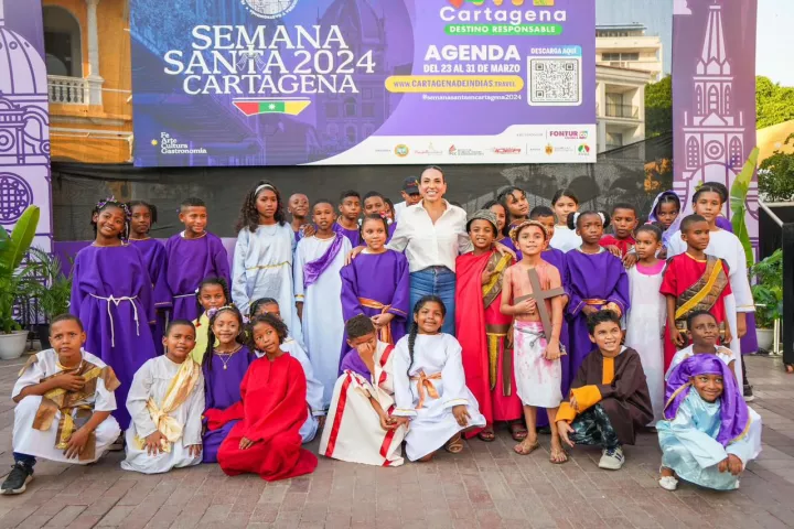 Cartagena de Indias D.T y C; 26 de marzo de 2024. En el marco de la agenda de Semana Santa 2024, se realizó en el Centro Histórico de Cartagena el Viacrucis Infantil, con el objetivo de vincular a los niños y familias cartageneras a la programación de esta temporada.