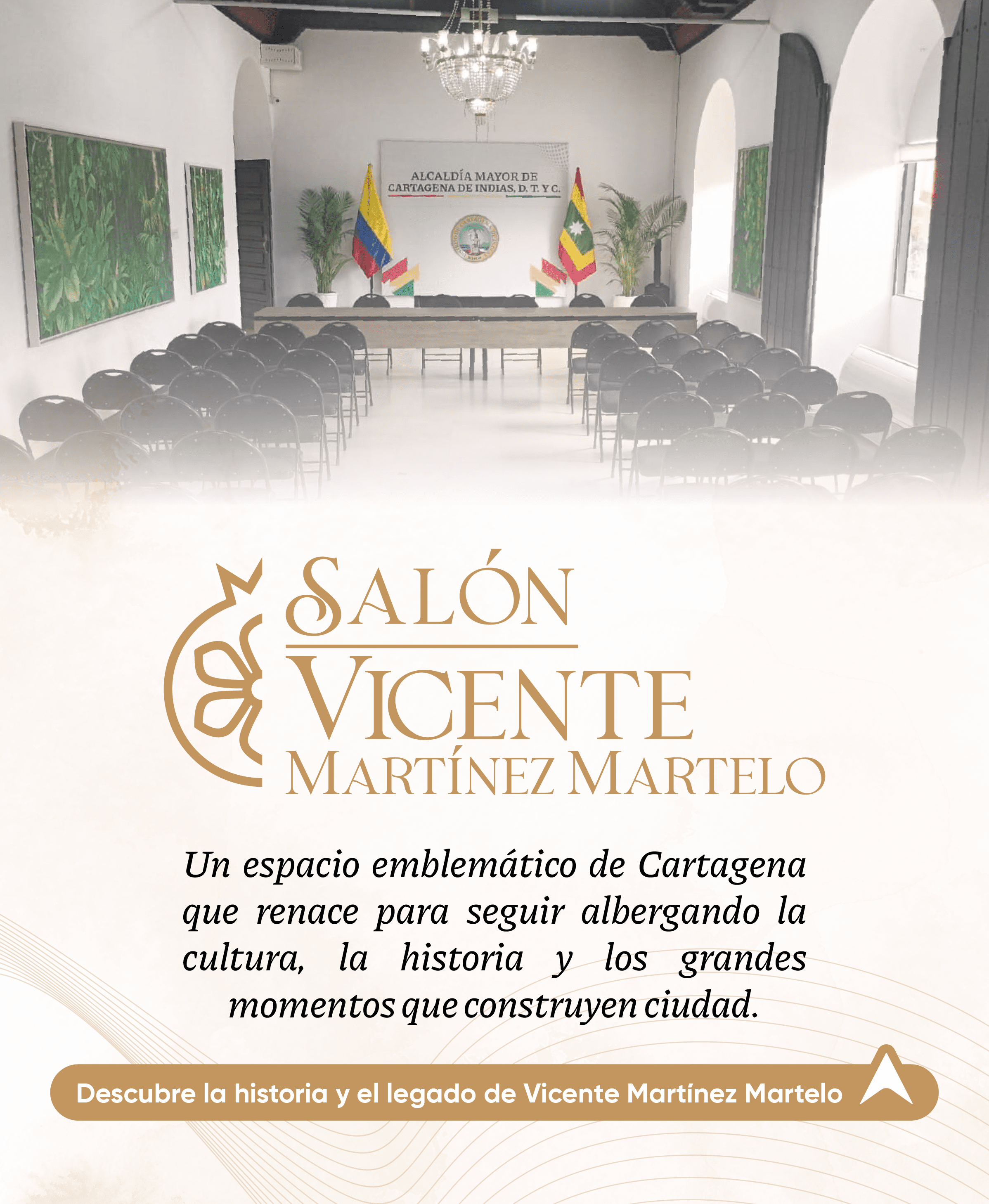 Vicente Martínez Martelo, “Don Vizo”, nació en Cartagena de Indias el 22 de noviembre de 1898. Hijo de Vicente Martínez Recuero y Tulia Martelo Jiménez, creció en el centro histórico de la ciudad. Estudió en el Colegio Universitario de Cartagena y más tarde en el Woodstock College, un departamento de McMaster University en Canadá. Esa experiencia le abrió la mirada al mundo y nutrió su visión de transformar a Cartagena en un polo turístico y moderno. Contrajo matrimonio con Laurina Emiliani Vélez en 1920, con quien formó una familia de diez hijos. Su hogar, la Casa Moraima en el Pie de la Popa, fue centro de vida familiar y social.