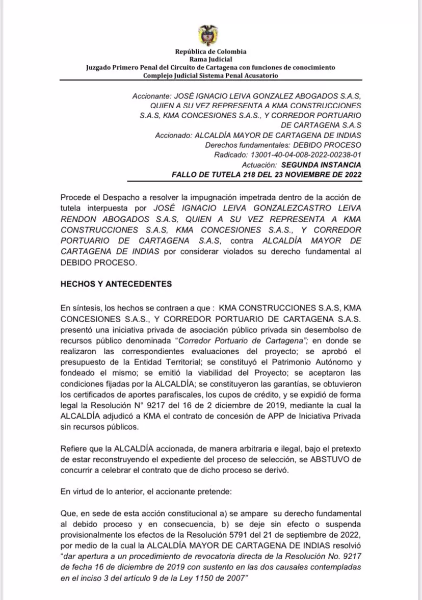 Confirmada en segunda instancia tutela que deja en firme revocatoria de la APP Corredor Portuario