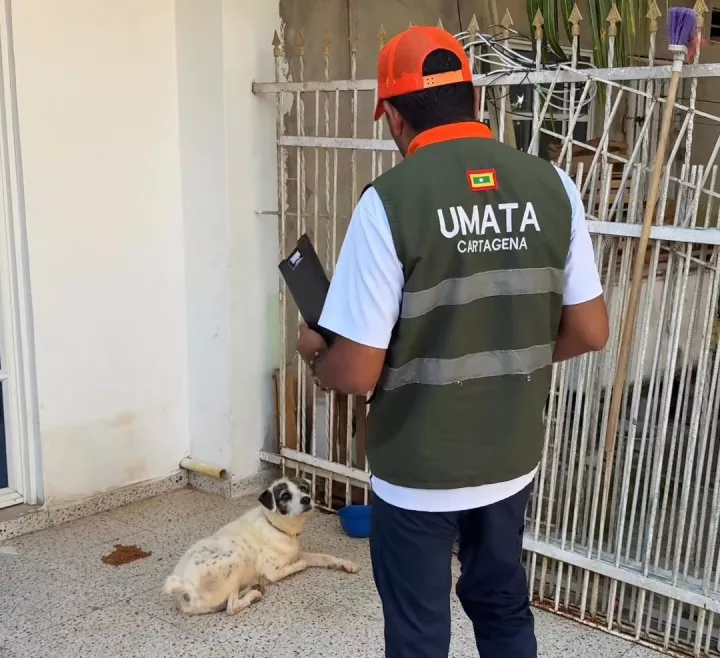 Cartagena de Indias D. T. y C., 4 de marzo de 2026. Tras una denuncia realizada por los vecinos de la Urbanización La India, la Umata llevó a cabo una visita de verificación para evaluar las condiciones de bienestar de un perro llamado ‘Yoco’.